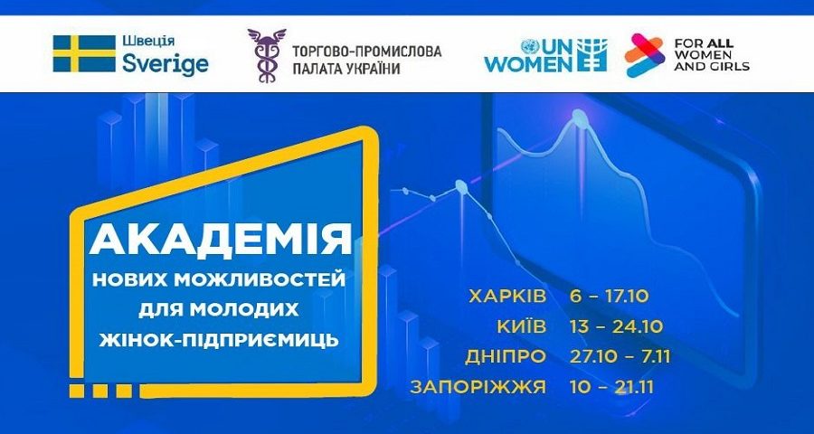 ООН Жінки в Україні у співпраці з Торгово-промисловою палатою України за фінансової підтримки уряду Швеції запускають масштабний освітньо-менторський проєкт «Академія нових можливостей для молодих підприємниць». Програму проєкту створено для підтримки підприємниць у віці від 18 до 35 років, які є внутрішньо переміщеними особами або проживають у прифронтових регіонах.