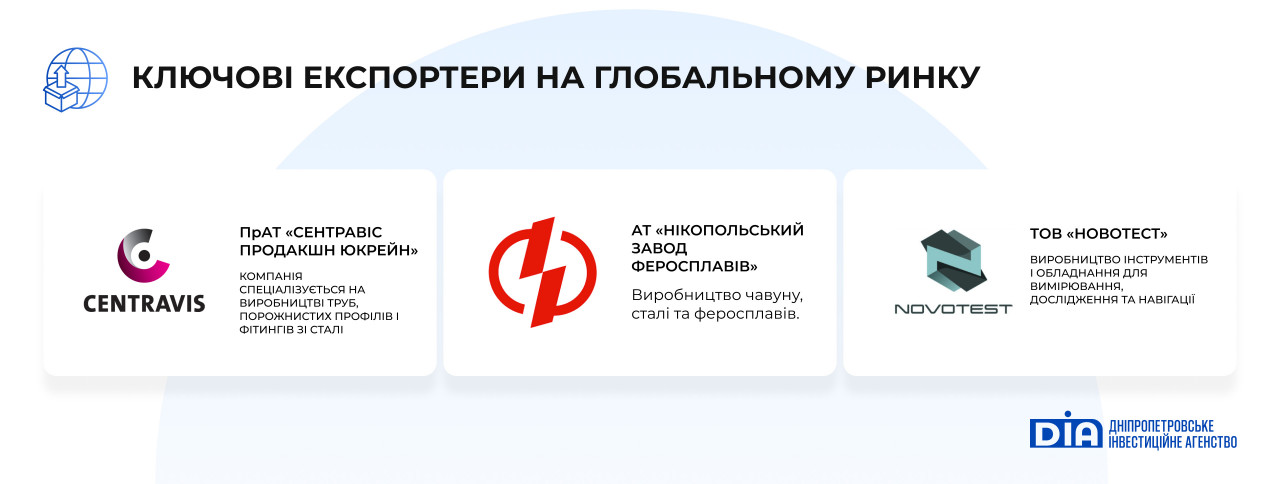 3 підприємства Дніпропетровської області експортували свою продукцію на аргентинський ринок, це підприємства металургійного комплексу та торгівлі.