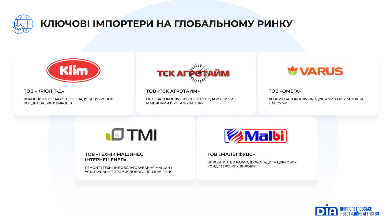 За обсягом імпортованої продукції до ТОП-5 увійшли наступні підприємства імпортери: