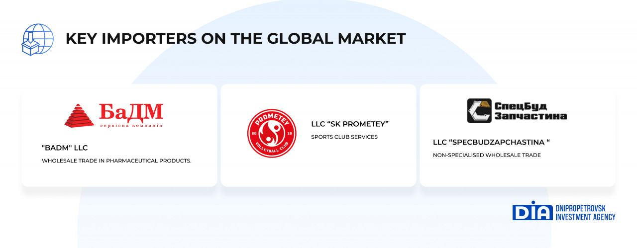 More than 10 enterprises from Dnipropetrovsk region carried out export operations. The main exporting companies are enterprises in the agro-industrial complex, the processing industry and mechanical engineering.