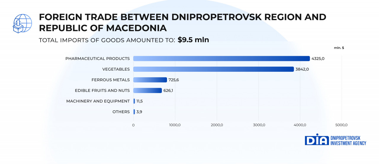 Imports of goods from the Republic of Macedonia to Dnipropetrovsk region increased 2.2 times compared to 2023 and amounted to $9.5 million.