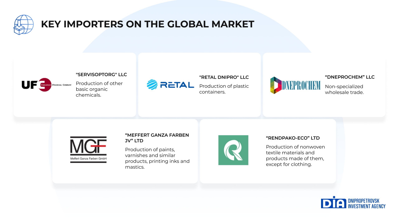 According to the volume of exported products, the TOP-5 imported enterprises include the following: