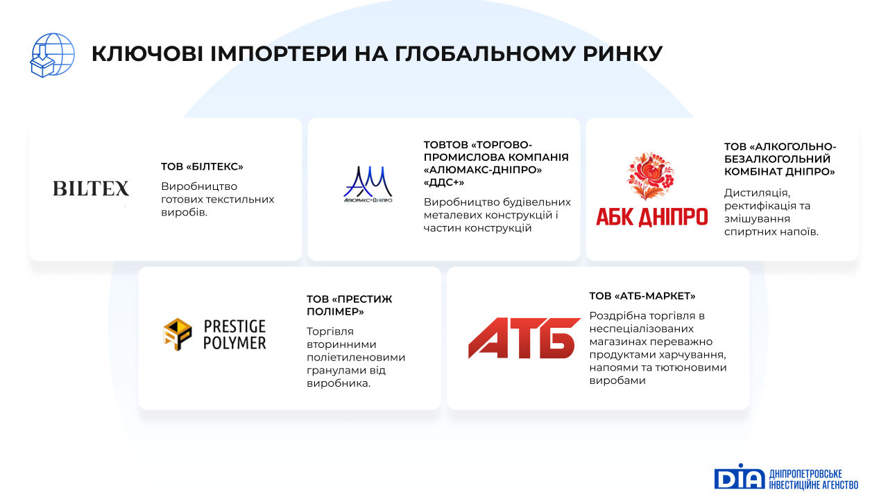За обсягом імпортованої продукції до ТОП-5 увійшли наступні підприємства імпортери: