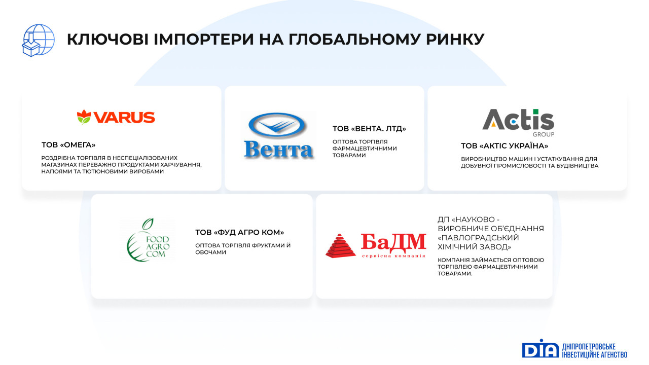 За обсягом імпортованої продукції до ТОП-5 увійшли наступні підприємства імпортери: