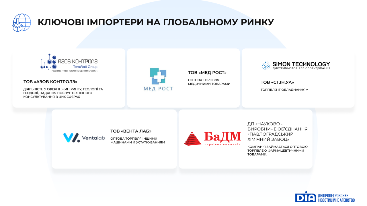 За обсягом імпортованої продукції до ТОП-5 увійшли наступні підприємства імпортери: